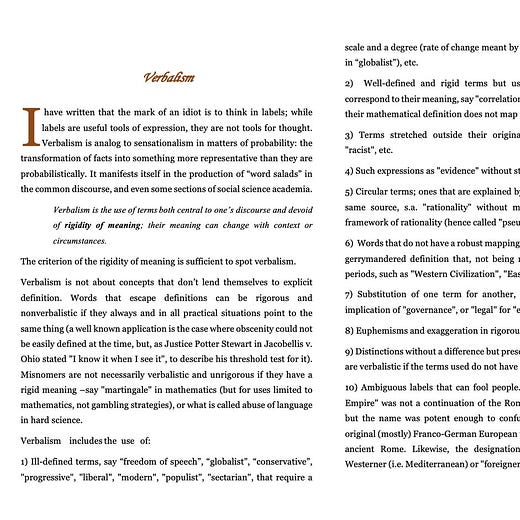 “Verbalism is the use of terms both central to one's discourse and devoid of rigidity of meaning; their meaning can change with context or circumstances.”